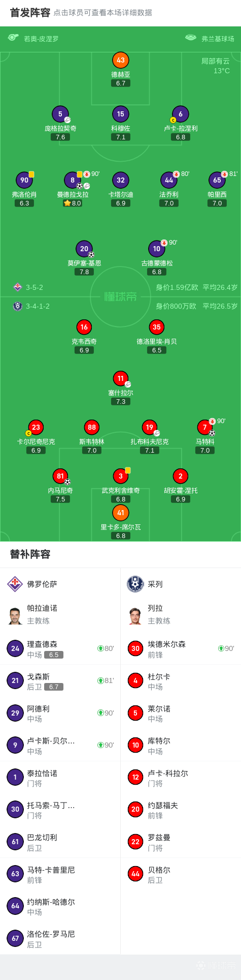 在第37分钟,庞格拉契奇的直塞球为曼德拉戈拉创造了良机,后者果断打入一球,为佛罗伦萨先拔头筹。但采列并未就此认输,第54分钟,扎布科夫尼克助攻,马特科铁锤般的一脚让比分重新回到平局状态。此后,内马尼奇在角球中的精彩表现再度将比分反超,给佛罗伦萨制造了不小的压力。